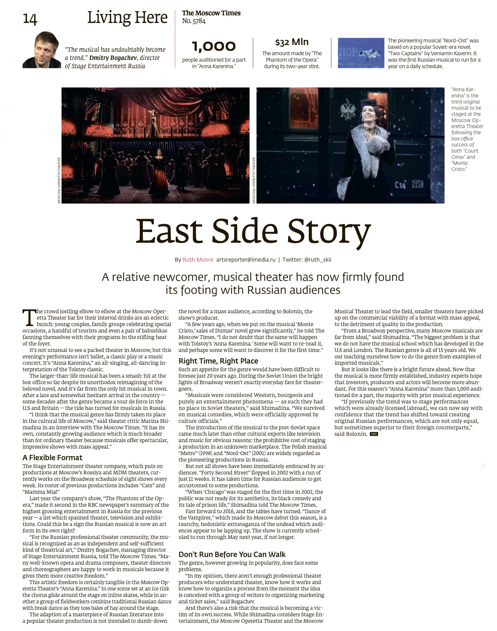 The Moscow Times: ‘Anna Karenina’ the Musical Arrives on the Moscow Stage’