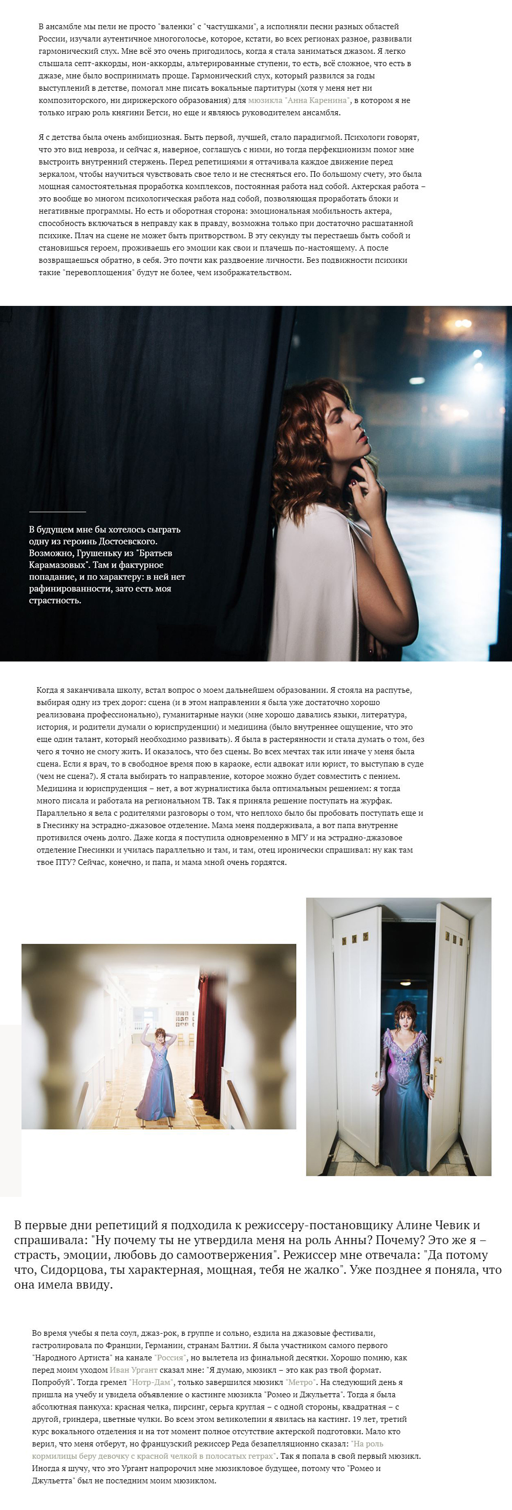 Bunch of Questions.com: «Наталья Сидорцова о внутреннем стержне, подвижной психике актеров и ролях на преодоление»