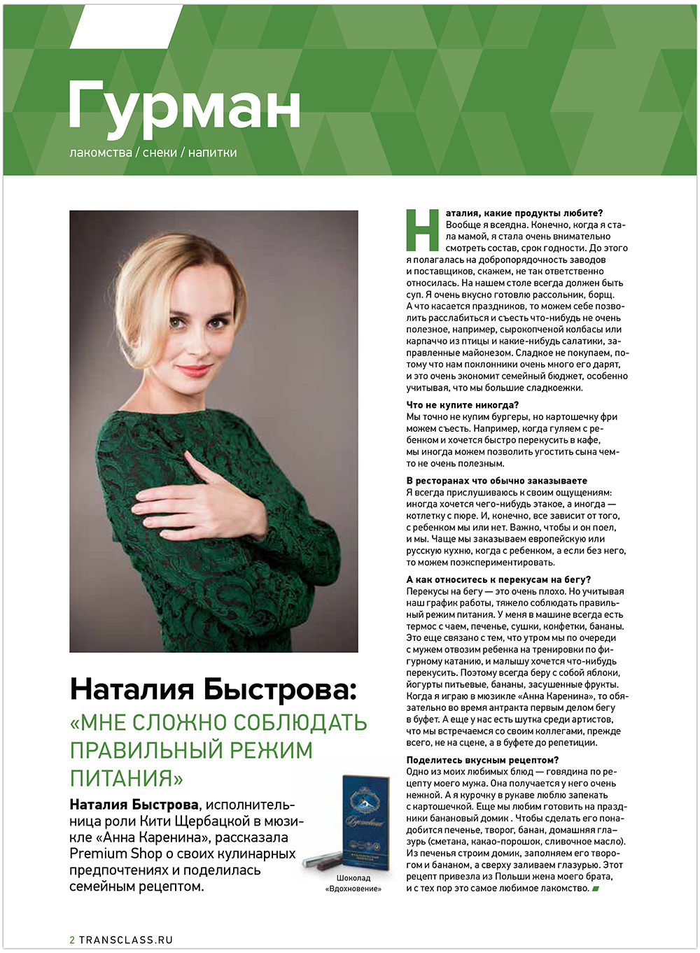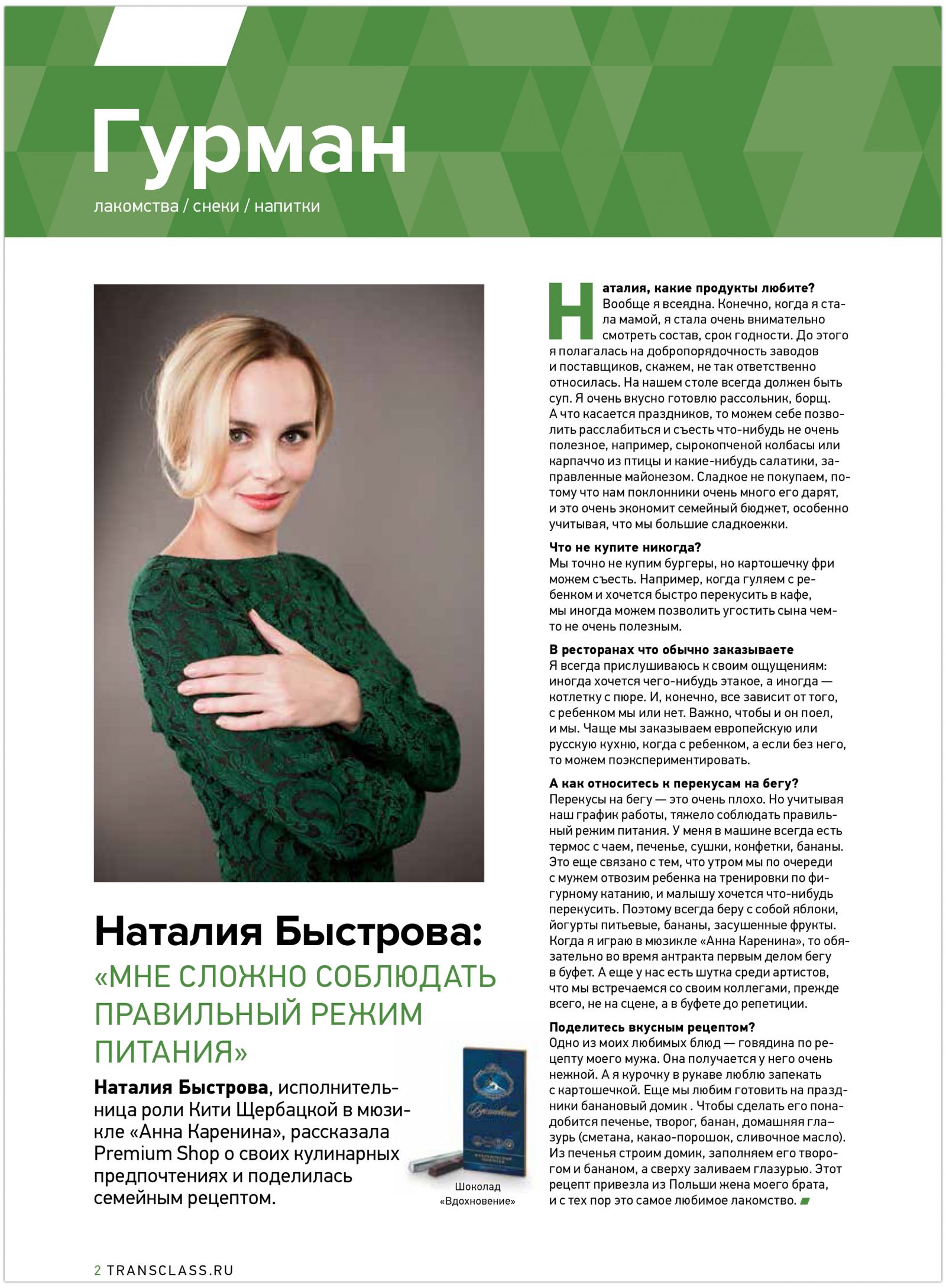 Журнал РЖД: «Наталия Быстрова: Мне сложно соблюдать правильный режим»