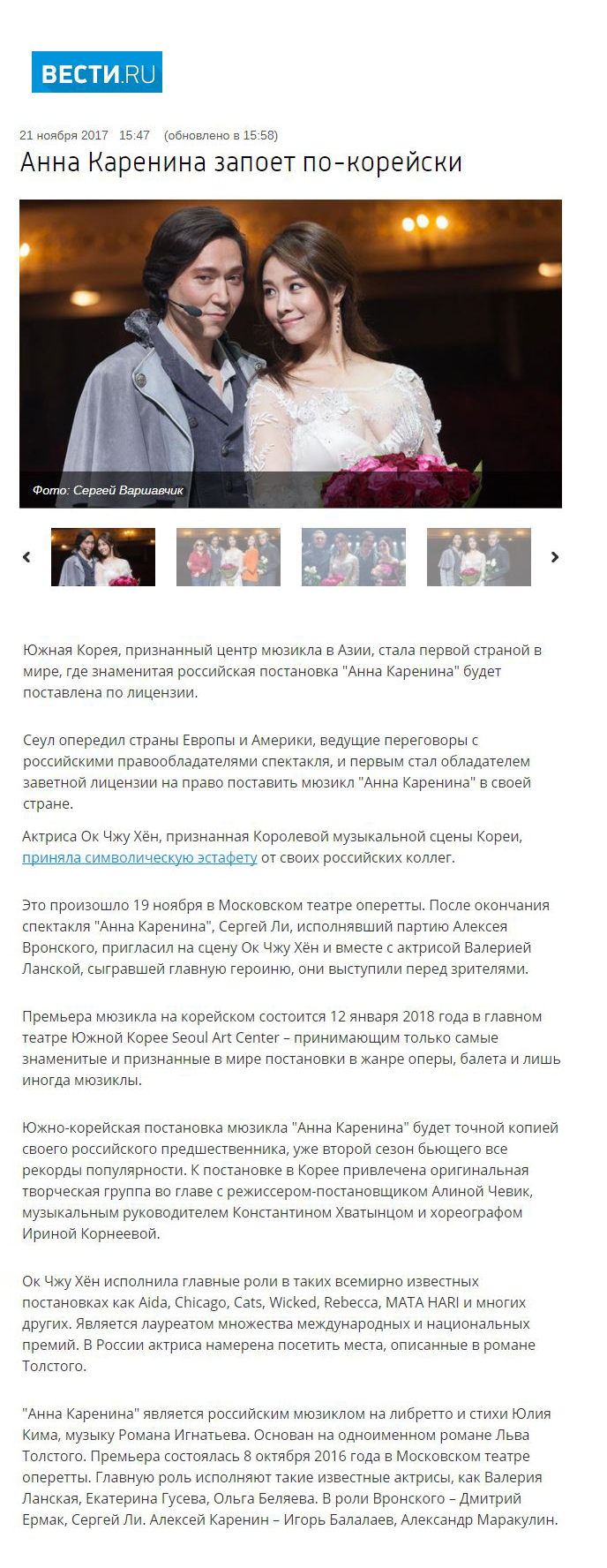 Вести.ru: «Анна Каренина» запоет по-корейски»