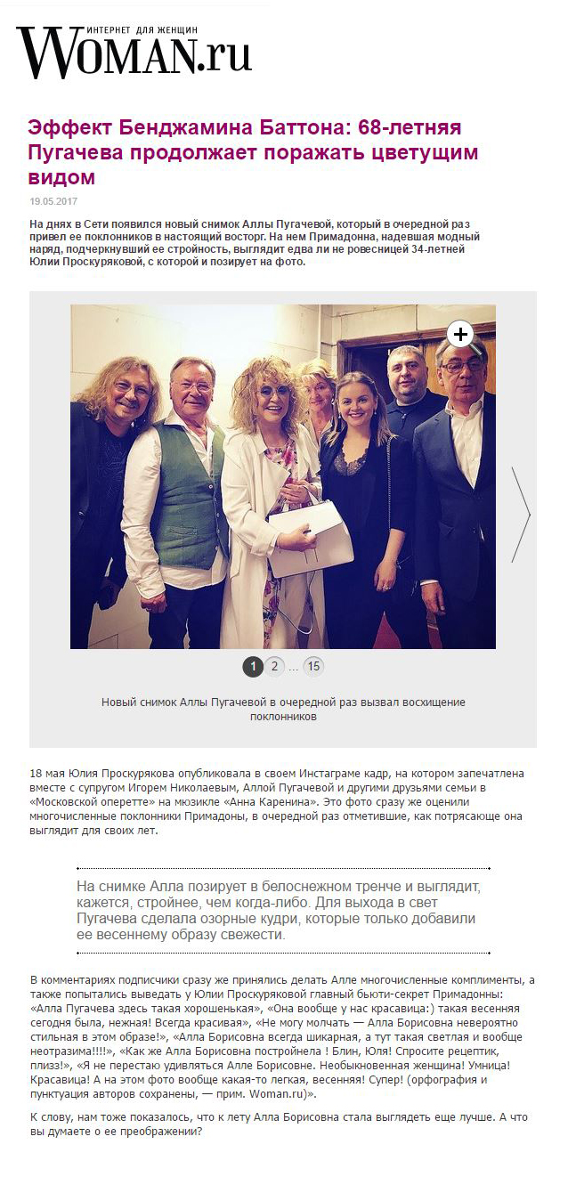 Woman.ru: «Алла Пугачева в «Московской оперетте» на мюзикле «Анна Каренина»