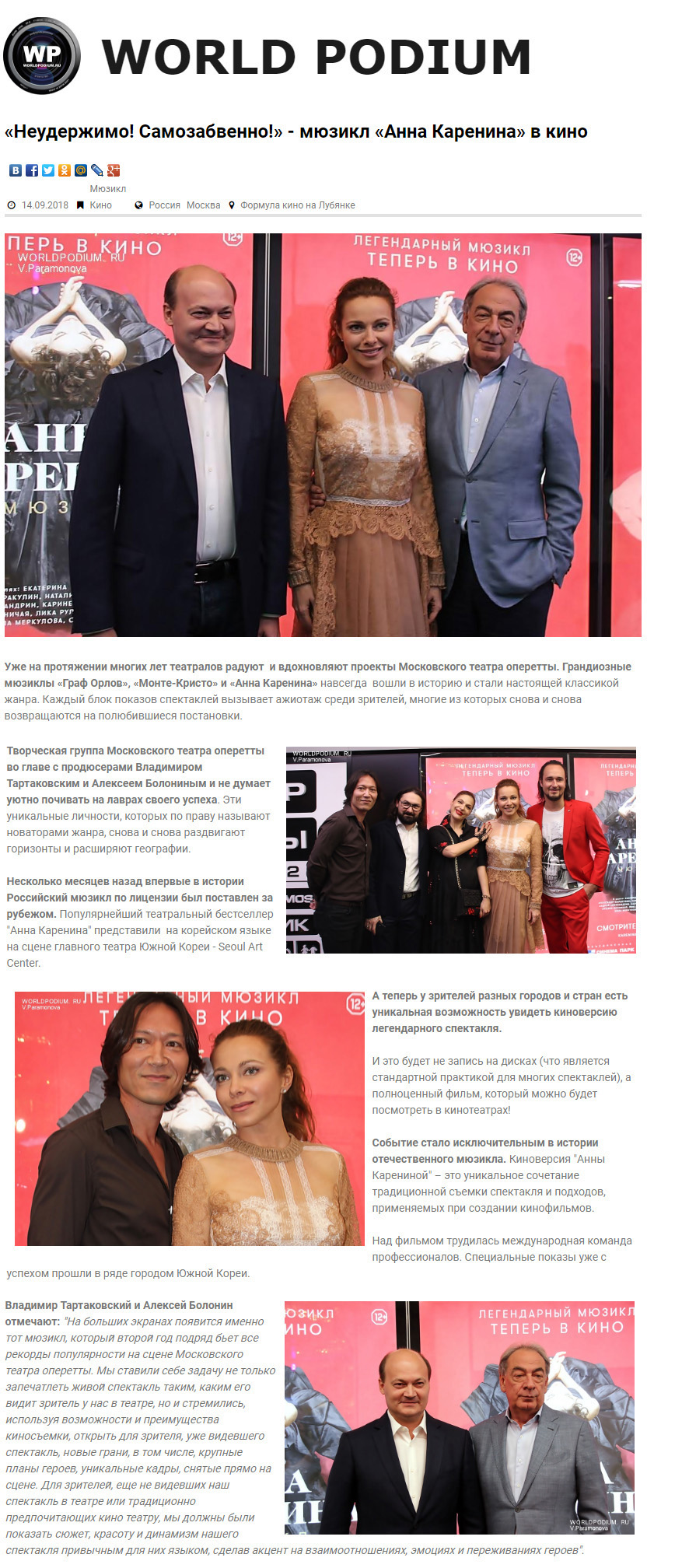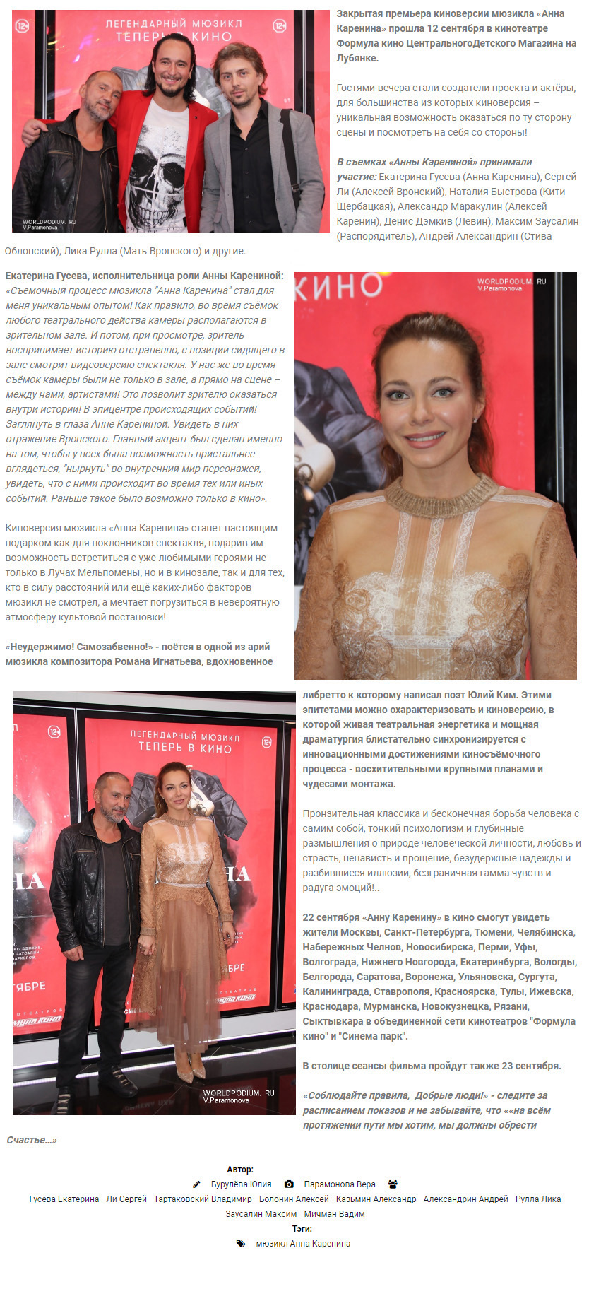 WorldPodium.ru: «Неудержимо! Самозабвенно!» - мюзикл «Анна Каренина» в кино»