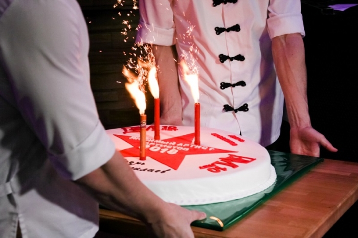 Ведущие юбилейного вечера Анна Гученкова и Сергей Ли пригласили на сцену основателей праздника, продюсеров российских оригинальных мюзиклов "Монте-Кристо", "Граф Орлов" и "Анна Каренина" Владимира Тартаковского и Алексея Болонина, которые после традиционного поздравления объявили, что праздник впервые пройдет без актерского капустника и конкурсов – всех гостей призвали только праздновать и отдыхать.