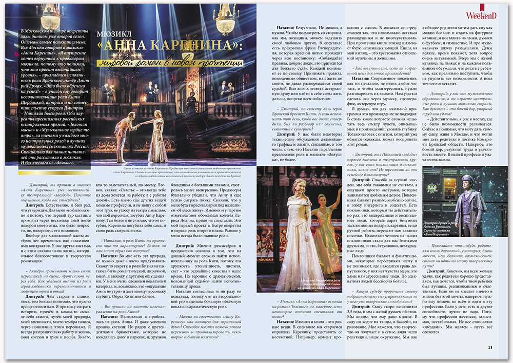 Журнал WeekenD: «Мюзикл «Анна Каренина»: мировой роман в новом прочтении»